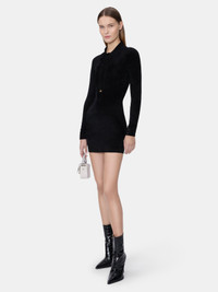 FOR AUTUMN-WINTER 2025, STREAMLINED SILHOUETTES ARE ELEVATED IN PLUSH VELVET. THE VELVET LONG SLEEVE BUTTON DOWN DRESS IS DESIGNED IN A FORM-FITTING PROFILE WITH FOUR-BUTTON CLOSURE, FINE RIB FINISHES, AND CUSTOM MA HARDWARE. AUTUMN-WINTER 2025 COLLECTION MADE IN ITALY 66% VISCOSE, 34% NYLON THIS GARMENT HAS UNDERGONE A SPECIAL PROCESS WHICH RESULTS IN INTENTIONAL VARIATIONS OF SHADING AND COLOR, AND ADD TO THE PIECE'S UNIQUE CHARACTERISTICS. THIS MAY LEAD TO BLEEDING OR DYE TRANSFER. PLEASE USE CAUTION WHEN WASHING OR DRY-CLEANING THIS ITEM STYLE:AWKNRS1038-001 SIZE & FIT MODEL MEASUREMENTS: HEIGHT: 5’9.5" CHEST: 32" WAIST: 23" HIP: 34" PRODUCT MEASUREMENTS (SIZE 38): CHEST: 14.4" WAIST: 12.8" LENGTH: 32.92" HIP: 17"