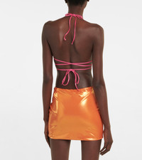 Alessandra Rich Laminated Lycra Skirt In Orange