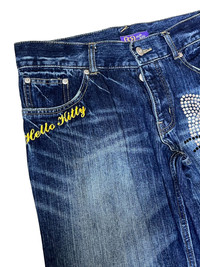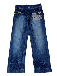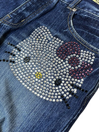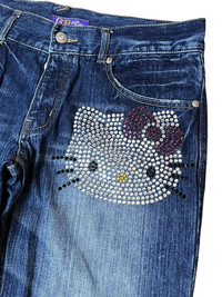 Anime - VINTAGE HELLO KITTY SEQUINS LOGO 2006 LOWRISE WIDE LEG JEANS