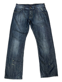 🔥🔥ACCEPT BINDING OFFER🔥🔥 FYE🔥ARMANI JEANS “WONDER BOY”STRAIGHT CUT JEANS(jb-2) ************************************* 👉in good condition..like 8/10.pre owned/used..distressed style. 👉material 100% cotton 👉made in ITALY. 👉size 32..waist(16")32"/inseam 30"/front rise 9.5"/knee 8.5”/open leg (8")16" 👉ship in 2-3day after payment made.fast shipping with DHL or FEDEX or POST MALAYSIA c.w tracking number.Estimated delivery 4-10 day depend on your location. 👉WE ACCEPT PAYPAL and STRIKE, ✌✌✌✌THANK YOU✌✌✌✌