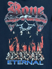 🔥🔥ACCEPT BINDING OFFER 🔥🔥 HIP HOP🔥BONE THUGS-N-HARMONY ETERNAL RAP TEE SHIRT(tsB-1)) *************************************** ↪condition like 9/10..pre owned/used in good condition. ↪material 100% cotton. ↪size LARGE.armpit 21.5"/length 30"/shoulder 21”/sleeve length 8”.recommended use for size M to L. ↪made in HONDURAS. ↪fast shipping with DHL/FEDEX Or MALAYSIA POST c/w tracking number.estimated delivery 4-10day depend on your location. ↪WE ACCEPT PAYPAL and STRIPE. ↪SEE ALL DETAILS SHOWN ON PHOTOS BEFORE BUY IT NOW OR MAKE OFFER. 💥💥💥💥THANK YOU💥💥💥💥