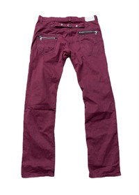 LEE COMBOY ZIPPER PANTS Tag : LEE Size : 34 Measurement (approx.) :inch - waist:18 - rise:11 -hip:23 -thight10.5 -inseam:36 -cuff:8.5 Color : Red Burgundy Origin : Made in China Condition : Gently Used 9/10 PAYMENT & SHIPPING • Accept Paypal ONLY • Please leave your phone number on the note while make a purchase. • This item will be ship along with Tracking Number after received a completed payment. • Shipping Method : Standard International Shipping, ETA 4-6 weeks. DHL services upon request. Dear Valued Customer : • Please do not expect the item in mint condition unless stated. It’s because vintage and used items may have sign of wear. • Don’t worry about Custom tax fees during Shipping because I always declared all items as a Gift and wrote the value lower than original price usually $10 only • Please don't hesitate to contact me if you have any inquiries ATTENTION • Please pay close attention to the measurement provided. • Do not rely on tag size as pre-worn items may have been altered, stretched or shrunk & vintage sizes do not directly translate the current sizes. • The best way to ensure a correct fit is to compare our measurements with the measurement of a similar items that you know fits yours well. • Please enlarge the photos for clearer image. I don’t accept returns, exchange or cancellations. Please read the descriptions and see the pictures carefully! Don’t forget to check out my store for more great stuff. Thank you.