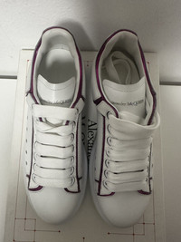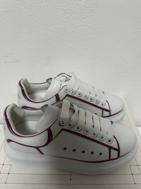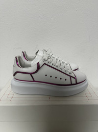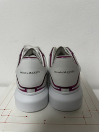 Alexander McQueen Oversized Sneakers - Size 36 - Low-top buffed calfskin sneakers in white and metallic pink. - Lace-up closure - Padded tongue and collar - Logo printed at heel tab - DS conditions, dust bag and box included - Retail price 590€ #alexandermcqueen #McQueen #sneakers #oversize #oversizedtop #trainers #shoes #luxury