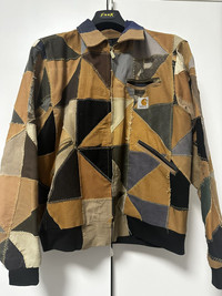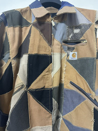 Carhartt Reworked Detroit Jacket - Custom Patchwork with vintage pieces - Size M - Unique piece 1x1 bought in New York - Lapel collar and sleeves with cuffs - Zip pocket at chest with Carhartt logo and two side pockets - Zip closure - Worn few times - Measurements : lenght 64cm - chest 44cm - sleeves 60cm - shoulders 48cm #carhartt #carharttjacket #CarharttDetroit #Newyork #vintage #patchwork #PatchworkJacket #fashion #jacket