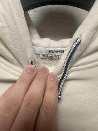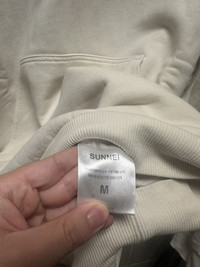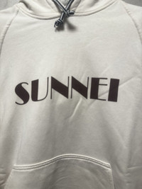 SUNNEI Logo Hoodie - Size M - Logo-print draswstring hoodie - Color ivory with brown logo lettering - 100% cotton - Used and with small hole on the right shoulder - Dimensions : lenght 63 cm / chest 40cm / sleeves 70 cm #sunnei #hoodie #fashion #basic #mensfashion #menstyle