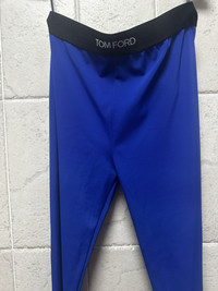 Tom Ford leggings - Stretch fabric, lycra with sock detail - Size S - Color : Blue - Elastic waistband with Tom Ford logo - Pull-on styling with partial front zipper closure - Composition: 72% polyamide, 28% elastane - Made in Italy - Retail price 310€ - DS condition, never used - Dimensions : Lenght 109cm / waist 30cm / front rise 24cm #tomford #logo #leggings #trousers #gym #SportyStyle #casual #running #fashion