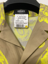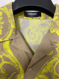 Versace Barocco Cotton Shirt - Size 48 - Mimosa - Sand colours - The shirt is a sample (CMP on neck tag), it will be arrived without brand tag - 100% Cotton - Barocco print in pale yellow - DS Conditions, never used - Measurements : lenght 72cm - chest 44cm - sleeves 26cm - shoulders 49cm #versace #versace2025 #v2versace #yellow #shirt #shirts #fashion #fashion2025 #sample