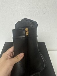 Versace Black Leather High Stiletto Boots - Size 37 - Heel 85mm - Versace's reinterpretation of the classic ankle boot style includes the renowned Medusa Head motif. - Placed on the front in a refined gold-tone, the branded plaque contrasts the pair's black leather construction - Pointed toe, side zip fastening, leather sole - 100% Calf leather - DS Conditions, never used with their dust bag - Retail price 1.150€ #versace #versace2025 #versaceshoes #boots #black #fashion #luxuryshoes