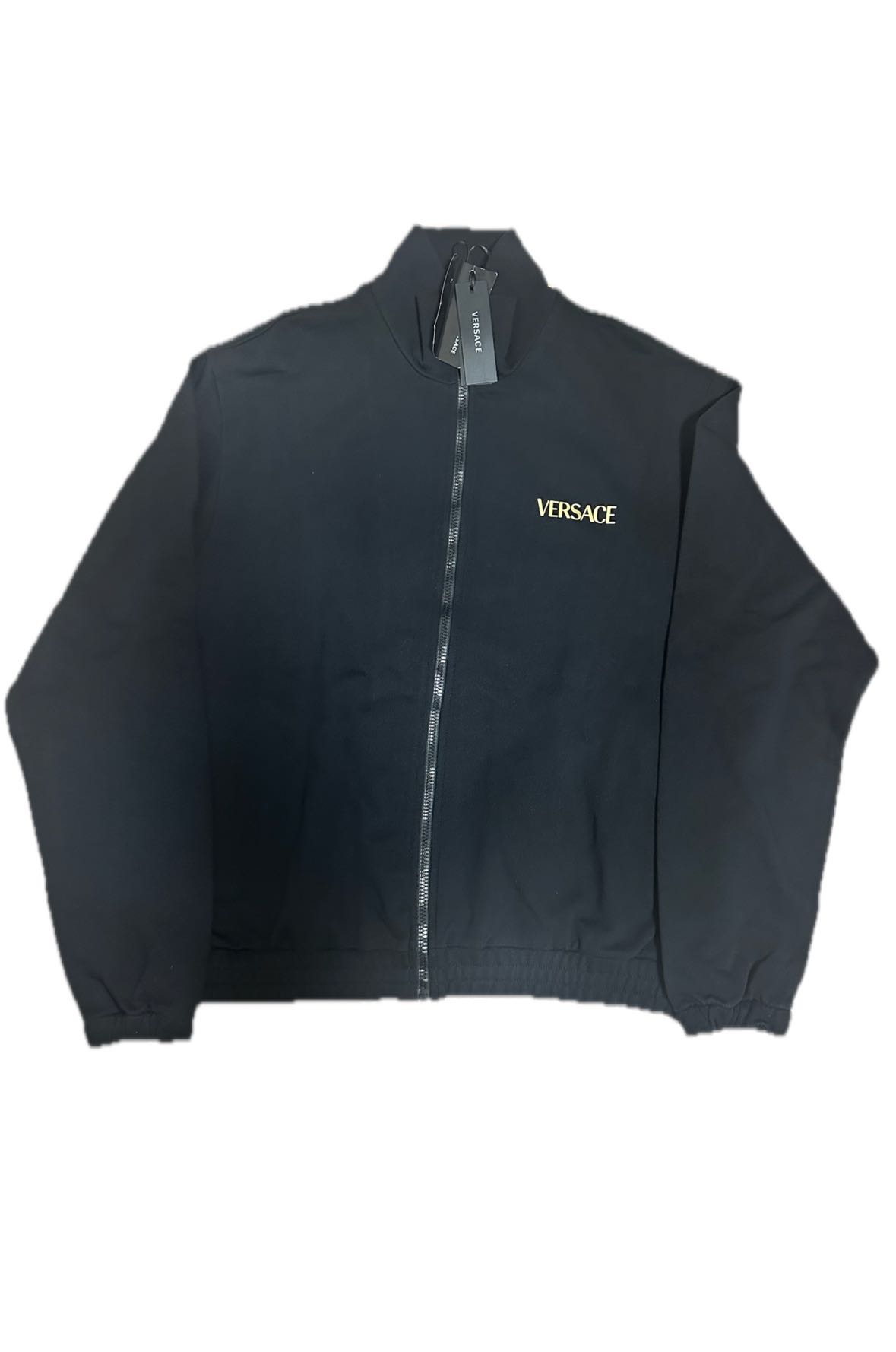 Versace Black Zip Sweatshirt - Size 2XL - Non-brushed track jacket with gold Medusa-head - Front two-way zip fastening, two side inset pockets, elasticated cuffs and hem - Retail price 980€ - DS Conditions, new with brand tag - Measurements : lenght 67cm - chest 64cm - sleeves 69cm - shoulders 50cm