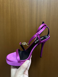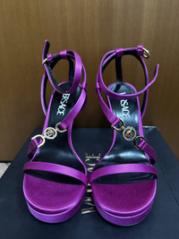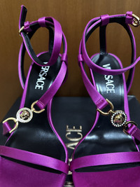 Versace Crystal Medusa 95 Sandals - Waterlilly / Pink with Medusa Gold - Size 36 - Heel 115mm - Calfskin with satin finish - Medusa plaque detail with crystal decoration - Square toe open, one-finger band, ankle buckle closure, leather sole with logo, leather outsole and stiletto heel - Retail price 890€ - DS conditions, never used, the box is slightly damaged #versace #versace2025 #versaceLuxury #crystals #sandals #fashion #fashion2025 #shoes