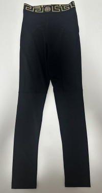 Versace Greca Black Leggings - Size M - Characteristic detail with a Greek motif, a medusa head motif, a high waist, an elasticated waist and a stretch design. - Composition: Polyamide 78% - Elastane 22% - DS conditions, never used with brand tag - Measurements : lenght 97cm - waist 31cm #versace #versace2025 #versaceLuxury #leggings #greca #black #gold #running #fashion