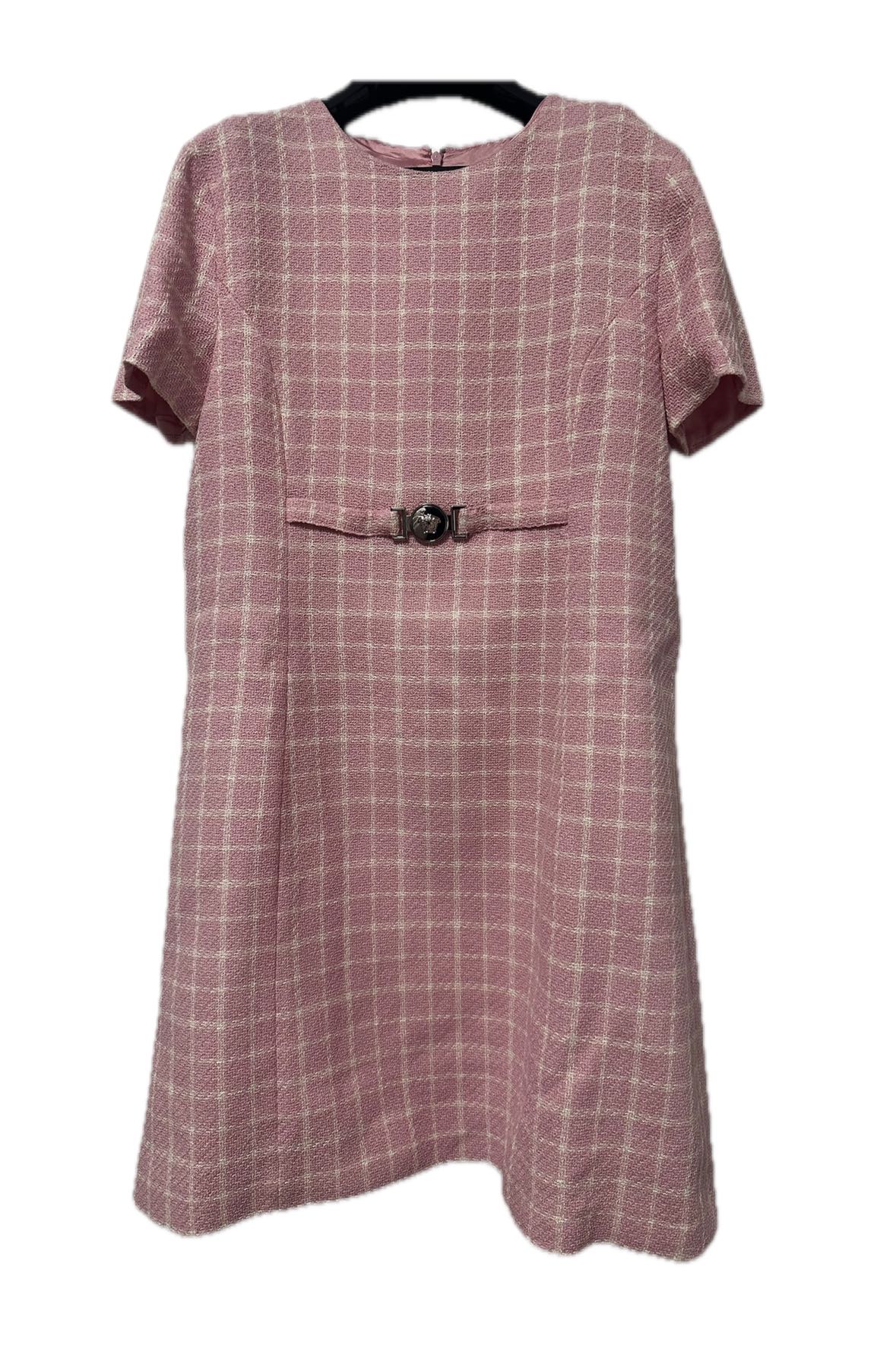 Versace Pink Check Mini Dress - Size 48 - Large checked wool crepe - Medusa ‘95 front silver hardware - Round neck, short sleeves, back zip closure - Retail price 2.590€ - DS Conditions, new with brand tag - Measurements : lenght 88cm - chest 41cm - hem 60cm - shoulders 39cm