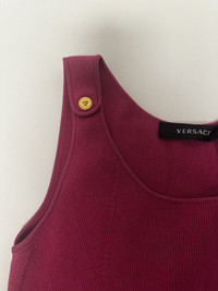 Versace Medusa Ribbed Knit Mini Dress - Size 42 - Color Pink - Medusa gold buttom on shoulder pads - Composition: 83% viscose - 17% polyester - Retail price 1.180€ - DS conditions, never used with brand tag - Measurements : lenght 87cm - chest 36cm #versace #versace2025 #versaceLuxury #knit #knitdress #dress #pink #womenswear