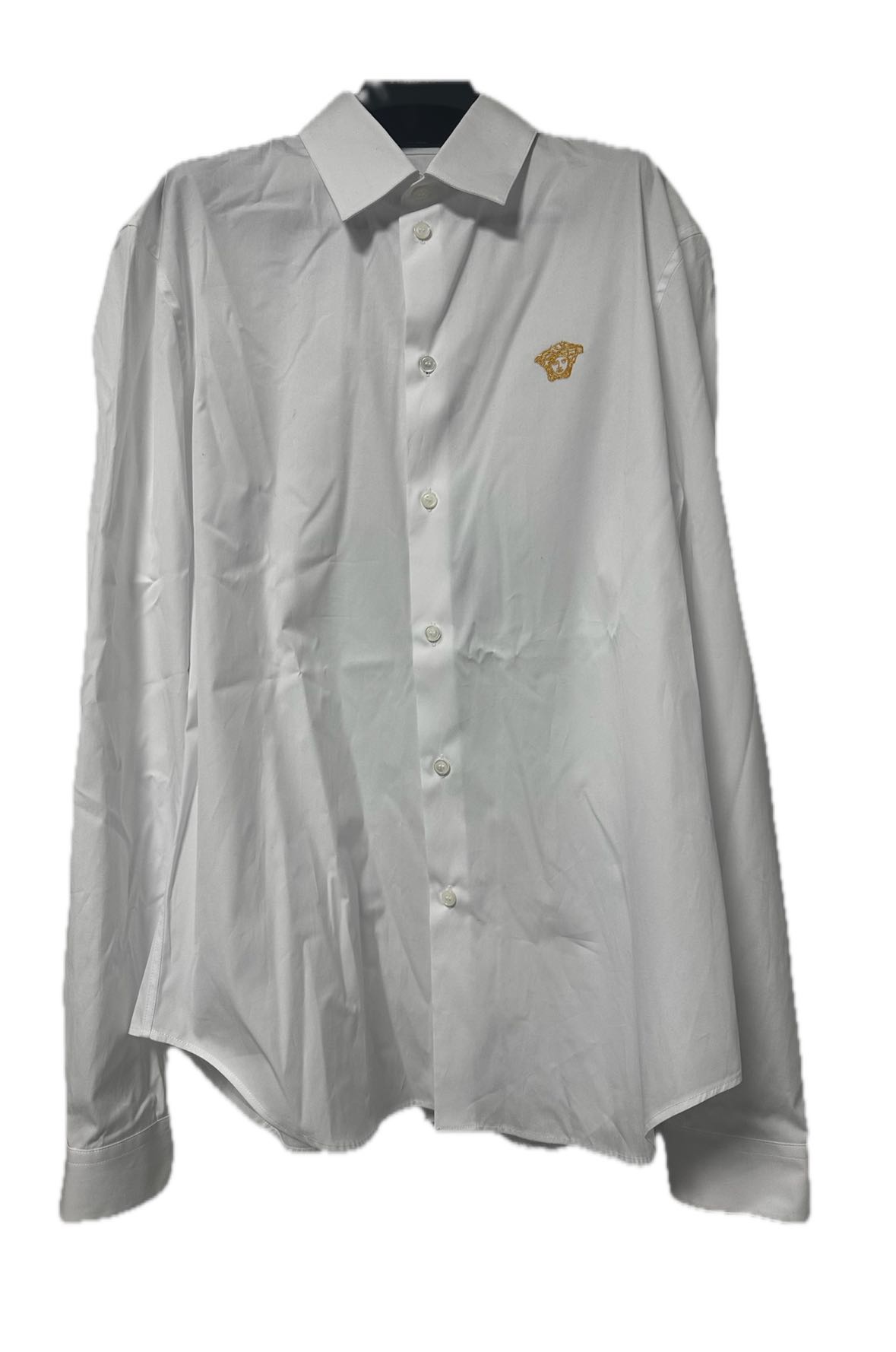 Versace White Formal Shirt - Size 40 (collar cm) - Small embroidered gold Medusa at chest - Long-sleeve cotton shirt - Single-button barrel cuffs, shirttail hem - Retail price 600€ - DS Conditions, new with brand tag - Measurements : lenght 76cm - shoulders 46cm - sleeves 64cm - chest 52cm #versace #shirt #white #medusa #formal #classic #business
