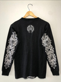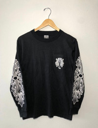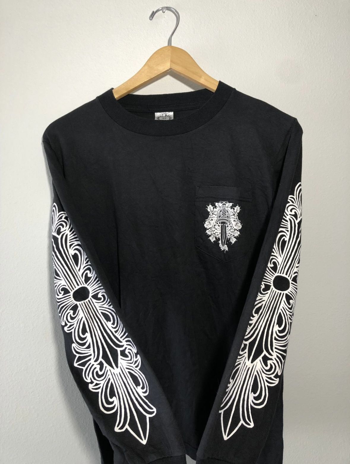 Sitting on this vintage chromehearts shirt from the 90s early 2000s. Embroidery and design still in great condition. Like new barely worn