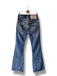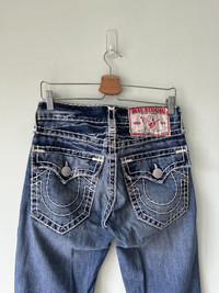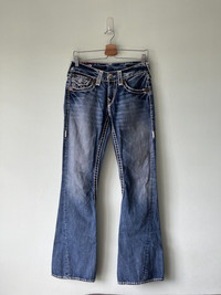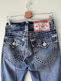 ITEM DESCRIPTION Tag Label : Vintage True Religion Bootcut Measurements: Size: 28 Waist: 14.5 inch = 29 inch Rise: 8 inch Length: 43 inch Inseam: 33 inch Thigh : 10 inch Open leg : 9.5 inch Made in : USA Recommend Size : Small Condition: EXCELLENT USED CONDITION SEE ALL PHOTOS FOR REFERENCE