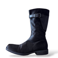 Christian Peau Handmade Black Horsehide Engineer Boots This Japanese brand specializes in leather goods that draws inspiration from classic European style and adds the Japanese craftmanship during the process. Features a hand-made finish, every piece uses different kinds of leather and traditional dyes making every pair of footwear unique. This black boots is made from a durable horsehide leather, it features leather buckle straps, side zip closure, and Christian Peau stamp on outsole. This boots retails for over 1000 USD, experience a hand-made Japanese craftmanship take on the avant-garde footwear with this slick-looking boots from Christian Peau. Hand-crafted in Japan. Size: 41 EU, fits 9.5 - 10 mens (narrow) Material: Horsehide leather Condition: Excellent, horse leather & hair are still pristine Color: Black Silhouette: Carol Christian Powell, Guidi. Thanks for viewing! Love, Jonio! #juntakahashi #undercover #commedesgarcons #reikawakubo #junyawatanabe #commedesgarconshommeplus #grailedfits #grailed #foundongrailed #jeanpaulgaultier #numbernine #yohjiyamamoto #yohjiyamamotopourhomme #helmutlang #isseymiyake #rafsimons #archiveraf #lgb #hystericglamour #margiela #maisonmargiela #undakovroneoff #kapital #horseleather #christianpeau #ccp #guidi #guidicommunity