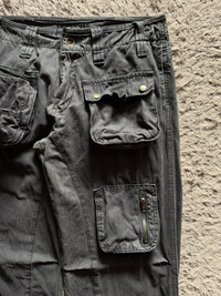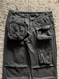 A Nameless Brand (ANB) Parasite Utility Cargo Pants Size: Tagged as Large -A Nameless Brand’s take on the utility cargo pants, it features an array of 3D pockets that are adorned with zippers, and snap buttons. (Total of 11 pockets) has a wide-leg fit. Made in Japan Measurements (in inches): Waist: 32-33 inches Inseam: 31.5 inches Rise: 10 inches Leg opening: 10 inches Length: 42 inches