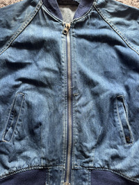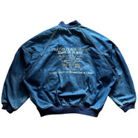 PPFM Archive 10th Anniversary Denim Bomber Jacket A rare archival piece from PPFM during their 10th anniversary, it features a boxy and heavy bomber jacket with 2 hand pockets, embroidered logo at the back, and big YKK zipper for closure Made in Japan Shoulder: 28 inches (dropped shoulders) Width: 27 inches Length: 24 inches Sleeve length: 18 inches