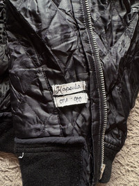 Kapsula Kanji Logo Quilted Sports Bomber Jacket Kapsula’s take on the Japanese sports jackets emerged in from early 80’s to late 90’s. This jacket features standard 2 hand pockets, and quilted stitching design. - Blank CDG quilted bomber - YKK-Zips, Made in Japan - Kapsula logo & text in Japanese - Boxy & wide fit Measurements: Shoulder:20 inches Width: 25 inches Length: 26 inches Sleeve: 23 inches All sewings and repairs are mended by hand. DM for more details for more details such as additional photos, prices, and availability.