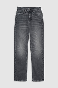 The Bruno Jean is constructed from midweight regenerative cotton denim in an smoke grey wash with a vintage-inspired feel. - Regenerative cotton denim - High rise - Button-fly closure - Straight leg - Ankle-length inseam - Raw-edge hem FIT + MEASUREMENTS Model is wearing a size 24. Model Measurements: Height: 5'9", Bust: 30", Waist: 23, Hips: 33" Product Measurements (Size 27): Inseam: 30", Rise: 11.3", Waist: 29.5", Hip: 39", Leg Opening: 14.5" MATERIAL + CARE 80% Cotton, 20% Post Consumer Recycled Cotton Machine wash separately Made in Turkiye