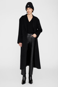 A cold-weather accessory made from a luxurious alpaca-wool yarn with all-over, vertical cardigan-stitch detailing. Its folded brim is finished with a small leather patch debossed with ANINE BING branding. One size fits most. FIT + MEASUREMENTS One size fits most. Model Measurements: Height 5'10.5", Bust 31", Waist 24", Hips 34" Product Measurements: Length: 11.4", Width: 7.5" MATERIAL + CARE 25% Alpaca, 25% Wool, 25% Polyamide, 25% Polyacrylic Dry clean Made in Turkey