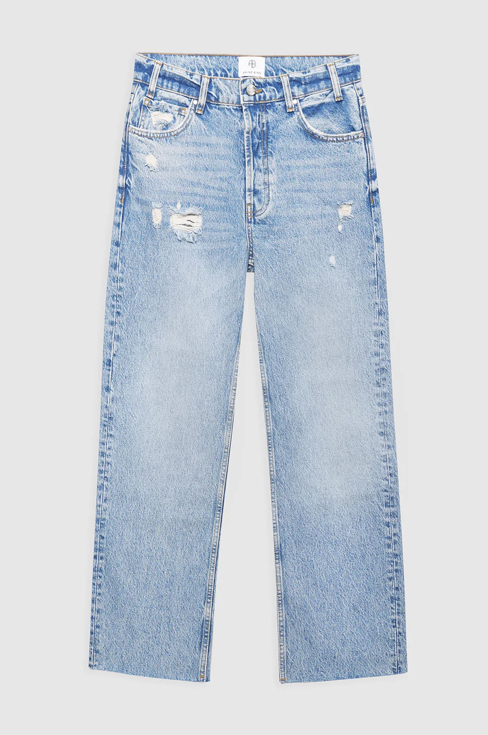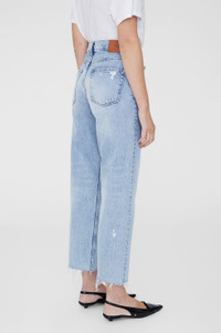 The cropped, boyfriend-inspired Gavin Jean is constructed from heavyweight rigid cotton denim without stretch in a faded, light blue wash with grinding at both back pockets, marbling, and vintage-inspired highs and lows throughout. - Rigid cotton denim - Relaxed-straight fit - Mid rise - Button-fly closure - Cropped inseam - Raw-edge hem FIT + MEASUREMENTS Mid Rise Relaxed Straight: Take your true size, or size up for a more relaxed fit due to this style's rigid, stretch-free construction. Model is wearing a size 24. Model Measurements: Height: 5'9", Bust: 30", Waist: 23", Hips: 34" Product Measurements (Size 27): Inseam: 28", Rise: 11.5", Waist: 30.5", Hip: 40.25", Leg Opening: 17" MATERIAL + CARE 100% Cotton Machine wash separately Made in Turkey