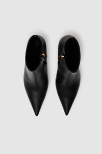 Modern sock booties made from 100% cow leather in a slight sheen. The Hilda Boots' sleek construction features a sharp pointed toe, low slanted heel, and high-shine outsole. Accented with gold-tone ANINE BING hardware at each heel. - Made in Portugal FIT + MEASUREMENTS True to size. If you are between sizes, we recommend taking the next size up. Model is wearing a size 39. Model Measurements: Height: 5'9.5", Bust: 32", Waist: 24.5", Hips: 33" Product Measurements (Size 37): Sole Length: 9.7”, Sole Width: 2.6”, Heel Height: 3”, Shoe Height: 11” MATERIAL + CARE 100% Cow Leather Spot clean Made in Portugal