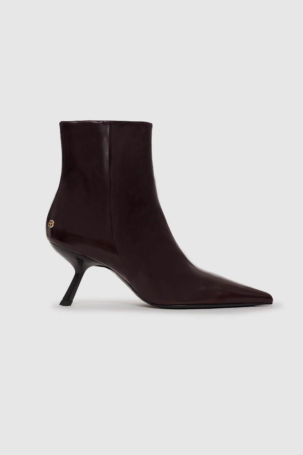 Modern sock booties made from 100% cow leather in a slight sheen. The Hilda Boots' sleek construction features a sharp pointed toe, low slanted heel, and high-shine outsole. Accented with gold-tone ANINE BING hardware at each heel. - Made in Portugal FIT + MEASUREMENTS True to size. If you are between sizes, we recommend taking the next size up. Model is wearing a size 39. Model Measurements: Height: 5'9.5", Bust: 32", Waist: 24.5", Hips: 33" Product Measurements (Size 37): Sole Length: 9.7”, Sole Width: 2.6”, Heel Height: 3”, Shoe Height: 11” MATERIAL + CARE 100% Cow Leather Spot clean Made in Portugal