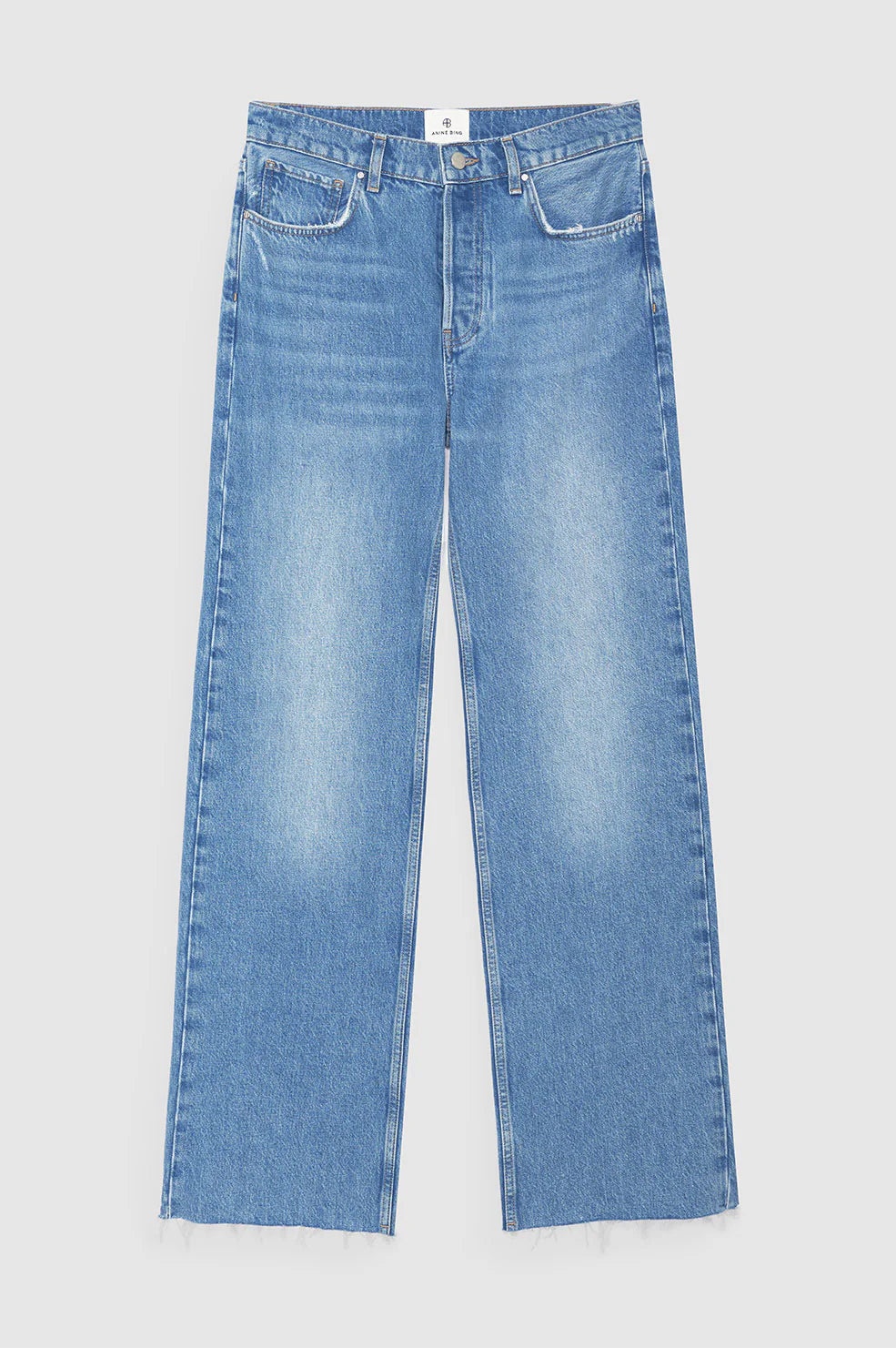 The Hugh Jean is a relaxed, '90s-inspired style constructed from midweight rigid organic cotton denim without stretch in a classic blue wash with vintage-inspired grinding, hand sanding, and highs and lows throughout. - Organic cotton denim - Relaxed fit - Mid rise intended to be worn low on the hips - Button-fly closure - Wide leg - Long inseam - Raw-edge hem FIT + MEASUREMENTS Mid Rise Relaxed Wide: A raw-edge hem allows for easy tailoring if alterations are desired. Take your true size. If you are in between sizes, we recommend taking one size up in this style. Model is wearing a size 24. Model Measurements: Height: 5'9", Bust: 30", Waist: 23", Hips: 34" Product Measurements (Size 27): Inseam: 34", Rise: 11.3", Waist: 31", Hip: 40", Leg Opening: 21" MATERIAL + CARE 50% Organic Cotton, 50% Cotton Made in Turkey