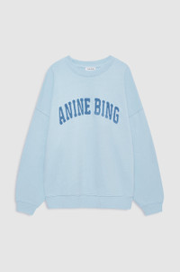 An oversized crewneck pullover made from midweight 100% cotton fleece in pale blue that's brushed on the inside. - Cotton fleece - Oversized fit - Ribbed cuffs and hem - Relaxed bottom band - Tonal chenille ANINE BING patch at front Please note: This item is individually handcrafted and will vary in color or appearance. FIT + MEASUREMENTS Relaxed, Oversized Fit: Take your true size. Model is wearing a size S. Model Measurements: Height: 5'9", Bust: 30", Waist: 23", Hips: 34" Product Measurements (Size S): Length: 25.8", Bust: 25", Sleeve Length from Center Back: 35" MATERIAL + CARE 100% Cotton Machine wash Made in Turkiye
