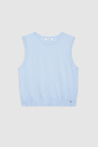 A knit tank crafted from a luxuriously lightweight wool-cashmere blend in an all-over jersey stitch with soft surface texture. - Merino wool-cashmere blend - Slim fit - Crew neckline - Ribbed detailing at neckband and armholes - Hand-tacked ANINE BING monogram charm at wearer's left hem FIT + MEASUREMENTS Slim Fit: Take your true size. Product Measurements (Size S): Length: 19.5", Bust: 17" MATERIAL + CARE 90% Merino Wool, 10% Cashmere Hand wash Made in China