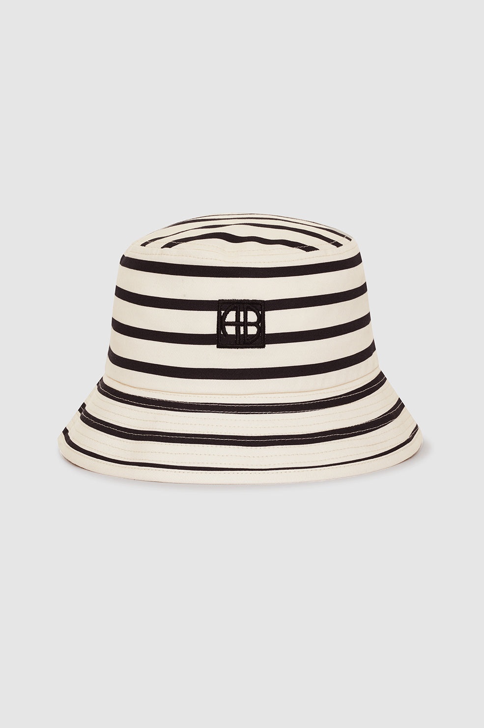 An everyday bucket hat made from a midweight cotton French terry fabrication with black and white Breton stripes. - Cotton twill - One size - Tonal framed monogram embroidered at the front FIT + MEASUREMENTS One size fits most. Model Measurements: Height: 5'7.5", Bust: 32", Waist: 23.5", Hips: 34.5" Product Measurements: Brim Height: 2.5", Circumference: 62" MATERIAL + CARE 100% Cotton Twill Machine wash Made in China