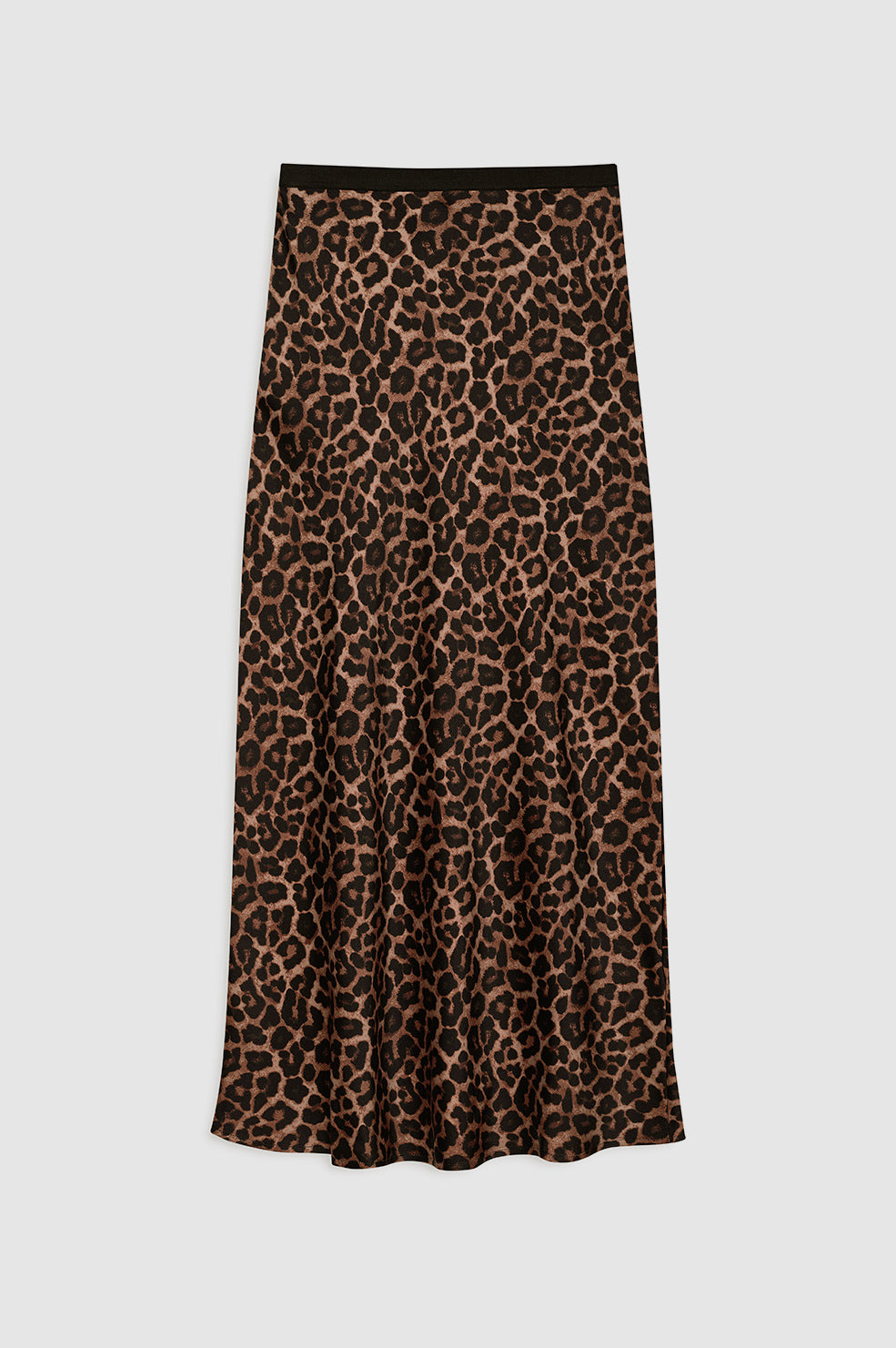 Printed Bar Silk Skirt - Black And Brown Leopard