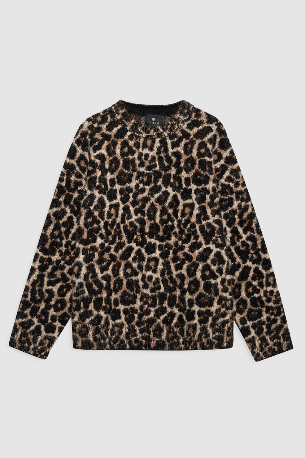 A cozy yet sophisticated layer crafted in a heavyweight cotton blend yarn finished with chunky, open-weave moss stitch detailing throughout. - Alpaca blend - Relaxed, oversized fit - Crew neckline - Long sleeves - Leopard intarsia FIT + MEASUREMENTS Relaxed, Oversized Fit: Take your true size, or one size down if a closer fit is preferred. Model is wearing a size S. Model Measurements: Height: 5'9", Bust: 30", Waist: 23", Hips: 34" Product Measurements (Size S): Length: 24.5", Bust: 24.5", Sleeve Length: 19.8" MATERIAL + CARE 32% Alpaca, 32% Wool, 30% Nylon, 6% Spandex Hand wash Made in China