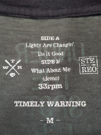Timely Warning Under the Spot Light Reglan Three Quarter Shirt Brand Name :- Timely Warning Size :- M Kindly see the size measurements :- (All measurements were taken lying flat) Actual size Manual Measurement (approximately) : ARMPIT :- 19 inches SHOULDER TO HEM :- 25 inches Condition: GREAT CONDITIONS (USED CLOTHING) SMALL RIPPED AT SHOULDER An item that has been used or worn previously. See Our listing for full details and description of any imperfections. Please don't expect it to be like new or in pristine condition Kindly see all pictures Thank you so much for your visit -Please pay immediately after offer accepted -100% authentic, all sales final, no refunds/returns -Make sure your PayPal is ready before make an offer. Otherwise Please do not offer!!
