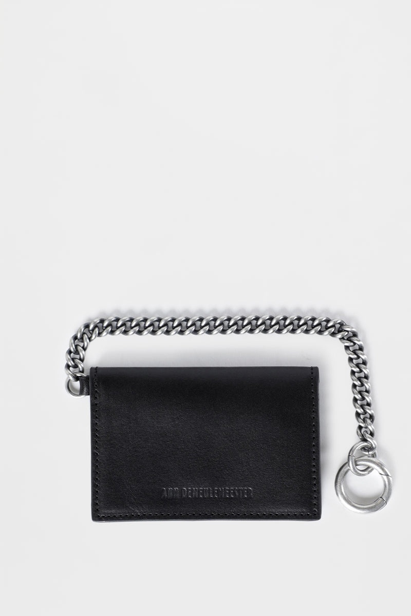 Ake Chain Wallet - Black - Oily Calfskin - Front Embossed Logo - Keychain - Press Stud Closure - 2 Internal Card Slots - Internal Zipped Pocket -100% Calf Leather - Made in Italy