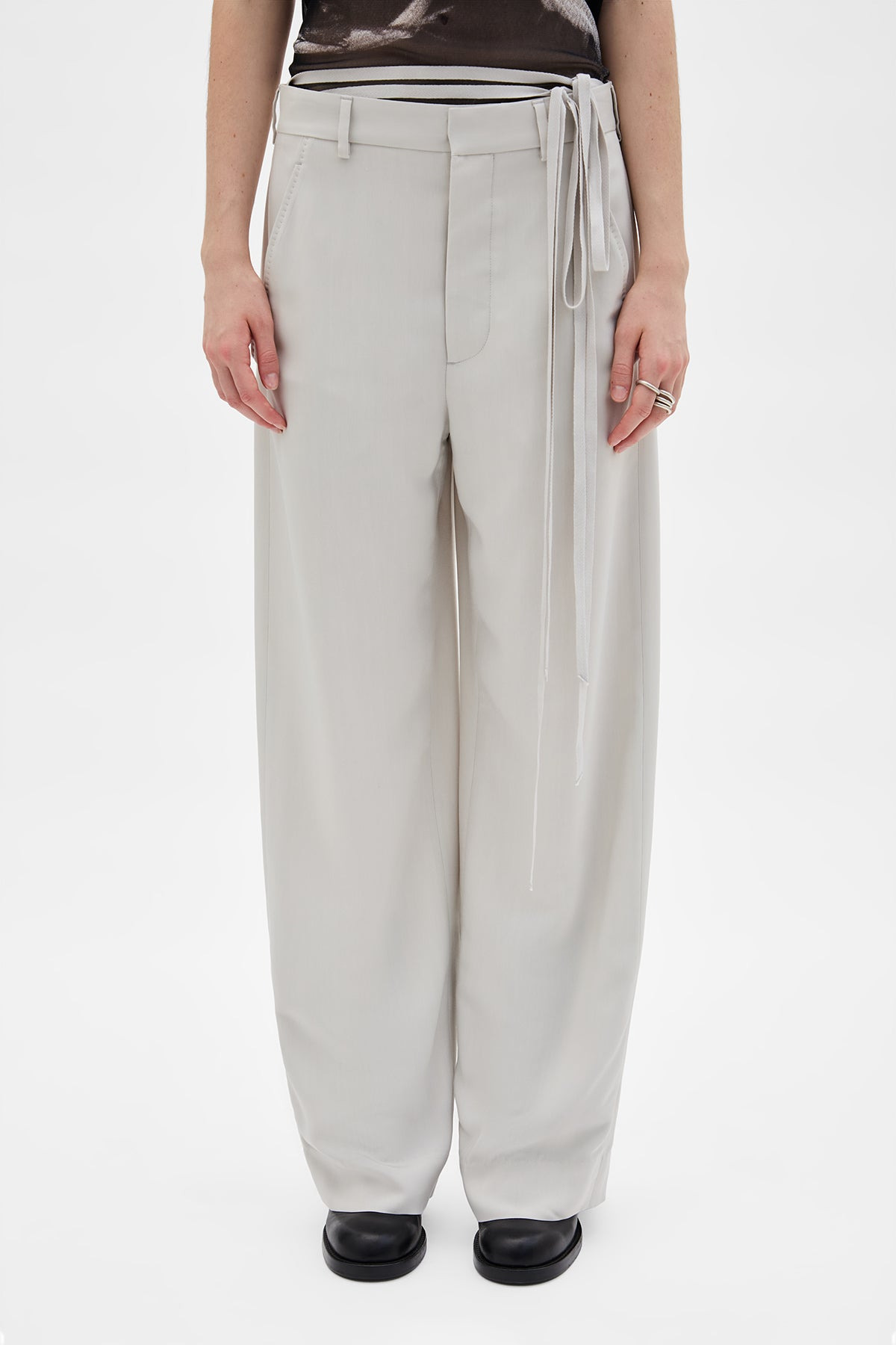 Anneke Comfort Tailored Trousers - Pearl - Viscose Calico - Belt Holes - Removable Signature Grosgrain Ribbon - Hook and Zip Closure - Side Pockets - Asymmetric Back Pockets - Wide Leg - Straight Fit - 100% Viscose - Made in Italy Model wears italian size 40 Care To maintain the beauty and integrity of your purchase, we recommend treating it with care. Simple maintenance practices, such as gentle washing and proper storage, can effectively preserve the longevity of your favorites. We encourage you to refer to the care instructions included with each item, designed to help you keep your purchase in top condition. Design Our dedication to excellence extends beyond materials; it encompasses the artistry and craftsmanship illustrated in every piece we create.