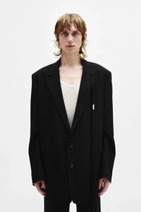 Anthoon High Comfort Tailored Blazer - black - notch lapels - removable signature grosgrain ribbon - button closure - chest pocket - side flap pockets - dropped shoulders - buttoned cuffs - back split - oversized fit - 100% Viscose - Made in Italy Model wears italian size 48 The fit of this item is oversize. If you prefer a narrow fit, consider purchasing this item two sizes down from your usual size. The sleeves of this gament are intetionally long, they can be shortened via internal button. Care To maintain the beauty and integrity of your purchase, we recommend treating it with care. Simple maintenance practices, such as gentle washing and proper storage, can effectively preserve the longevity of your favorites. We encourage you to refer to the care instructions included with each item, designed to help you keep your purchase in top condition. Design Our dedication to excellence extends beyond materials; it encompasses the artistry and craftsmanship illustrated in every piece we create.