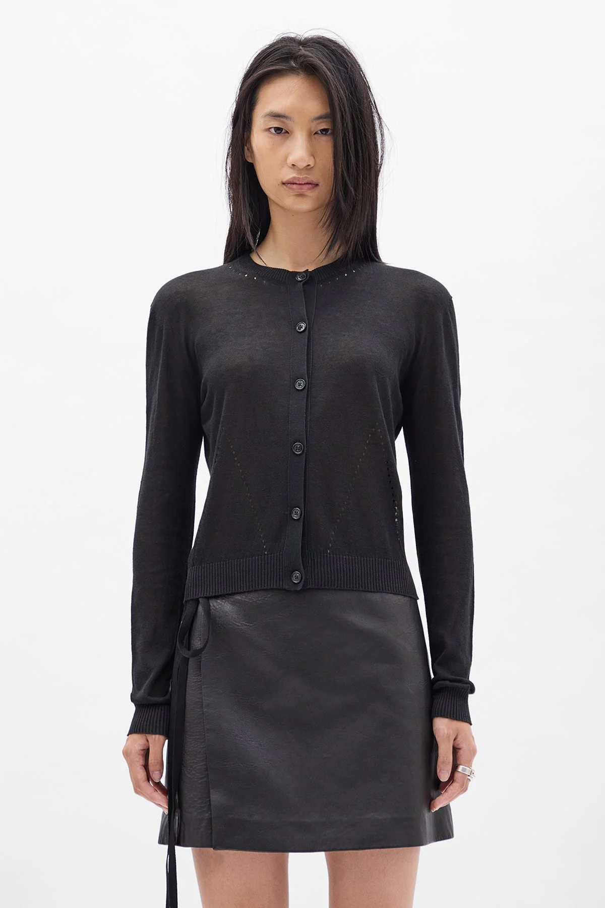 Bjel Seamless Cardigan - Black - Soft Cotton and Wool-Silk Blend - Seamless Design - Ribbed Hem and Cuffs - Button Closure - Perforated Detailing - Classic Fit - 50% Cotton 30% Wool 20% Silk - Made in Italy Model wears italian size S Care To maintain the beauty and integrity of your purchase, we recommend treating it with care. Simple maintenance practices, such as gentle washing and proper storage, can effectively preserve the longevity of your favorites. We encourage you to refer to the care instructions included with each item, designed to help you keep your purchase in top condition. Design Our dedication to excellence extends beyond materials; it encompasses the artistry and craftsmanship illustrated in every piece we create.