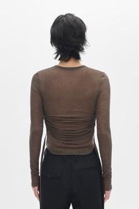 Brando Wrinkled Cropped Long Sleeve Top - Sage - Round Neck - Dropped Shoulders - Long Sleeves - Slim Fit - 100% Cotton - Made in Italy Model wears size M Care To maintain the beauty and integrity of your purchase, we recommend treating it with care. Simple maintenance practices, such as gentle washing and proper storage, can effectively preserve the longevity of your favorites. We encourage you to refer to the care instructions included with each item, designed to help you keep your purchase in top condition. Design Our dedication to excellence extends beyond materials; it encompasses the artistry and craftsmanship illustrated in every piece we create.