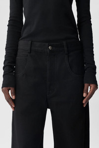 Women's Claire 5 Pockets Comfort Trousers - Black - Front Pockets - Back Pockets - Denim - 100% Cotton - Made In Italy Model wears Italian size 40 Height: 179 cm Waist: 58 cm Hips: 90 cm