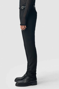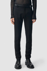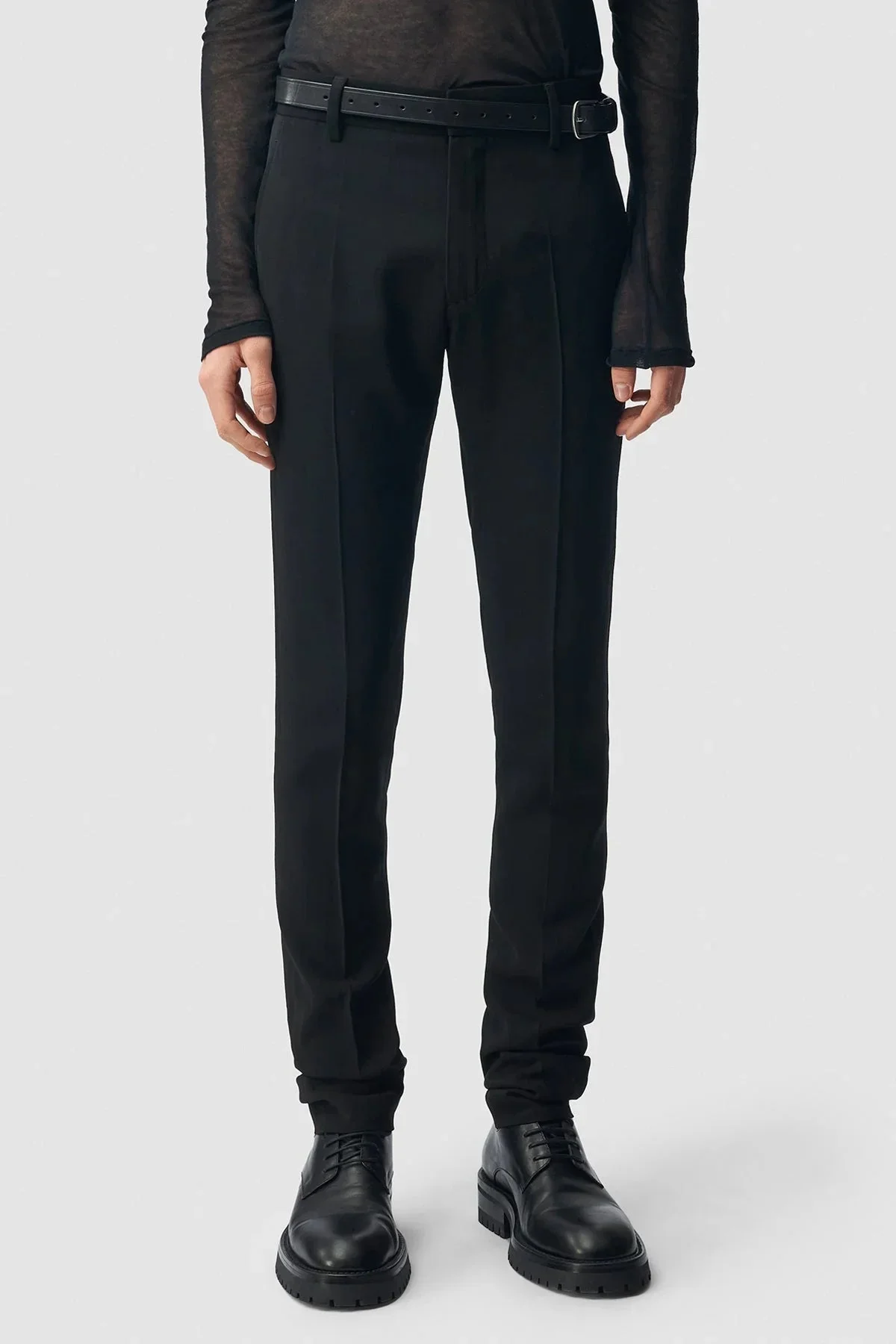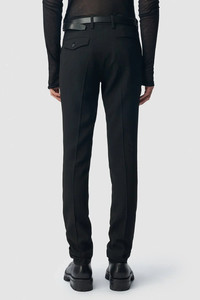 Men's Damien Slim Fit Trousers in Viscose Twill - Black - Viscose Twill - Leg Crease - Belt Holes - Hook and Zip Closure - Side Pockets - Asymmetric Back Pockets - Slim Fit - 71% viscose- 29% virgin wool - Made In Italy