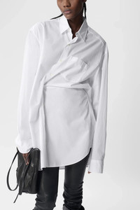 Elisabeth High-Comfort Shirt - White - Classic Collar - Button Closure - Twisted Front Chest Pocket - Long Sleeves - Buttoned Cuffs - 100% Cotton - Made in Italy The fit of this item is oversize. If you prefer a narrow fit, consider purchasing this item two sizes down from your usual size. Model wears italian size 40 Height: 181 cm Waist: 54 cm Hips: 89 cm Care To maintain the beauty and integrity of your purchase, we recommend treating it with care. Simple maintenance practices, such as gentle washing and proper storage, can effectively preserve the longevity of your favorites. We encourage you to refer to the care instructions included with each item, designed to help you keep your purchase in top condition. Design Our dedication to excellence extends beyond materials; it encompasses the artistry and craftsmanship illustrated in every piece we create.