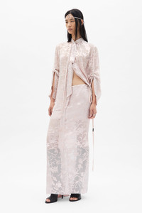 Eveline Long Bias Skirt - Pale Rose - Viscose-Silk Blend - Delicate Floral Embroidery - Adjustable Tie Waist - Semi-Sheer Design - Floor-Length Silhouette - 59% Viscose 41% Silk - Made in Italy Model wears italian size 40 Care To maintain the beauty and integrity of your purchase, we recommend treating it with care. Simple maintenance practices, such as gentle washing and proper storage, can effectively preserve the longevity of your favorites. We encourage you to refer to the care instructions included with each item, designed to help you keep your purchase in top condition. Design Our dedication to excellence extends beyond materials; it encompasses the artistry and craftsmanship illustrated in every piece we create.