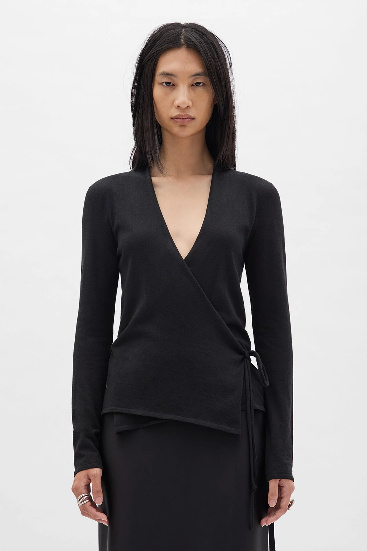 Fro Wrap Knit Cardigan - Black - Soft Cotton, Wool, and Silk Blend - Wrap Design - Adjustable Side Tie - Long Sleeves - Unlined - 50% Cotton, 30% Cashmere, 20% Silk - Made in Italy Model wears italian size S Care To maintain the beauty and integrity of your purchase, we recommend treating it with care. Simple maintenance practices, such as gentle washing and proper storage, can effectively preserve the longevity of your favorites. We encourage you to refer to the care instructions included with each item, designed to help you keep your purchase in top condition. Design Our dedication to excellence extends beyond materials; it encompasses the artistry and craftsmanship illustrated in every piece we create.