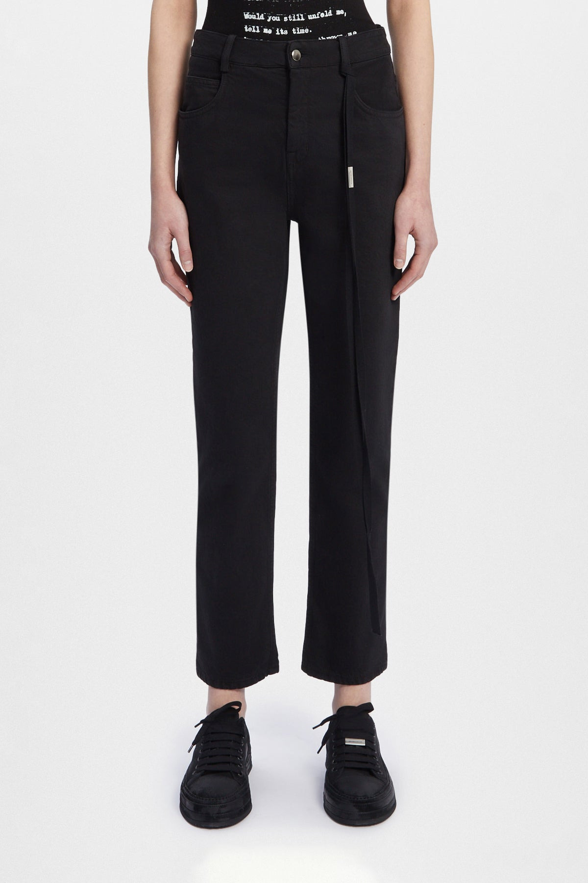 Herme 5 Pockets Slim Fit Cropped Trousers - Black - Slim fit silhouette - Cropped length above the ankle - Clean Hem Finish - Removable Signature Grosgrain Ribbon - Button And Zip Closure - 5 Pockets - 100% Cotton - Made in Italy Model wears size 26 Care To maintain the beauty and integrity of your purchase, we recommend treating it with care. Simple maintenance practices, such as gentle washing and proper storage, can effectively preserve the longevity of your favorites. We encourage you to refer to the care instructions included with each item, designed to help you keep your purchase in top condition. Design Our dedication to excellence extends beyond materials; it encompasses the artistry and craftsmanship illustrated in every piece we create.