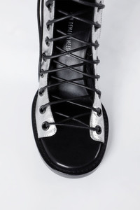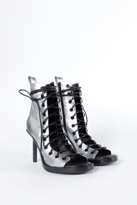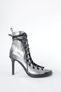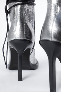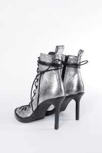 Hilla Chunky Pointed Heeled Ankle Boots - Silver - 100% Calf Leahter - Made in Italy Ann Demeulemeester shoes embody the essence of luxury and comfort. The generously wide fit is a design choice aimed at ensuring a comfortable wear. For those who prefer a snugger fit, we recommend using an insole. Crafted from the highest quality leather, it is natural for the shoes to feel stiff initially. By wearing and walking in them, they will perfectly mold to the shape of your feet, offering unparalleled comfort. The fit of this item is regular. Consider to purchase your usual size. Care To maintain the beauty and integrity of your purchase, we recommend treating it with care. Simple maintenance practices, such as gentle washing and proper storage, can effectively preserve the longevity of your favorites. We encourage you to refer to the care instructions included with each item, designed to help you keep your purchase in top condition. Design Our dedication to excellence extends beyond materials; it encompasses the artistry and craftsmanship illustrated in every piece we create.