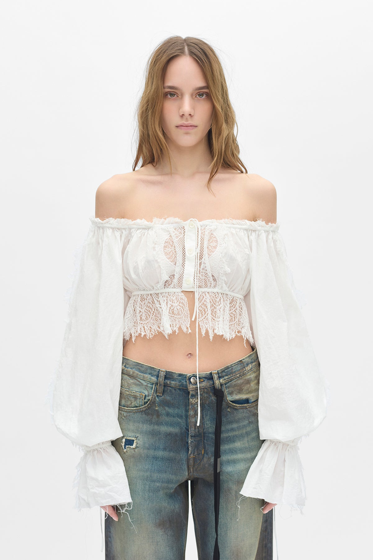 Jorunn Crop Top With Distressed Lace Details – Natural White – Cropped silhouette - 100% Cotton – Made in Italy Model wears italian size 40 The fit of this item is regular. Consider to purchase your usual size. Care To maintain the beauty and integrity of your purchase, we recommend treating it with care. Simple maintenance practices, such as gentle washing and proper storage, can effectively preserve the longevity of your favorites. We encourage you to refer to the care instructions included with each item, designed to help you keep your purchase in top condition. Design Our dedication to excellence extends beyond materials; it encompasses the artistry and craftsmanship illustrated in every piece we create.