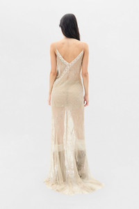 Lala X-Long Bias Dress with Lace Detail - Mastic - Silk Cotton Blend - Intricate Lace Detail - Bias Cut - Spaghetti Straps - Sheer Lace Overlay - Floor-Length - 50% Silk, 42% Cotton, 8% Polyester - Made in Italy Model wears italian size 40 Care To maintain the beauty and integrity of your purchase, we recommend treating it with care. Simple maintenance practices, such as gentle washing and proper storage, can effectively preserve the longevity of your favorites. We encourage you to refer to the care instructions included with each item, designed to help you keep your purchase in top condition. Design Our dedication to excellence extends beyond materials; it encompasses the artistry and craftsmanship illustrated in every piece we create.